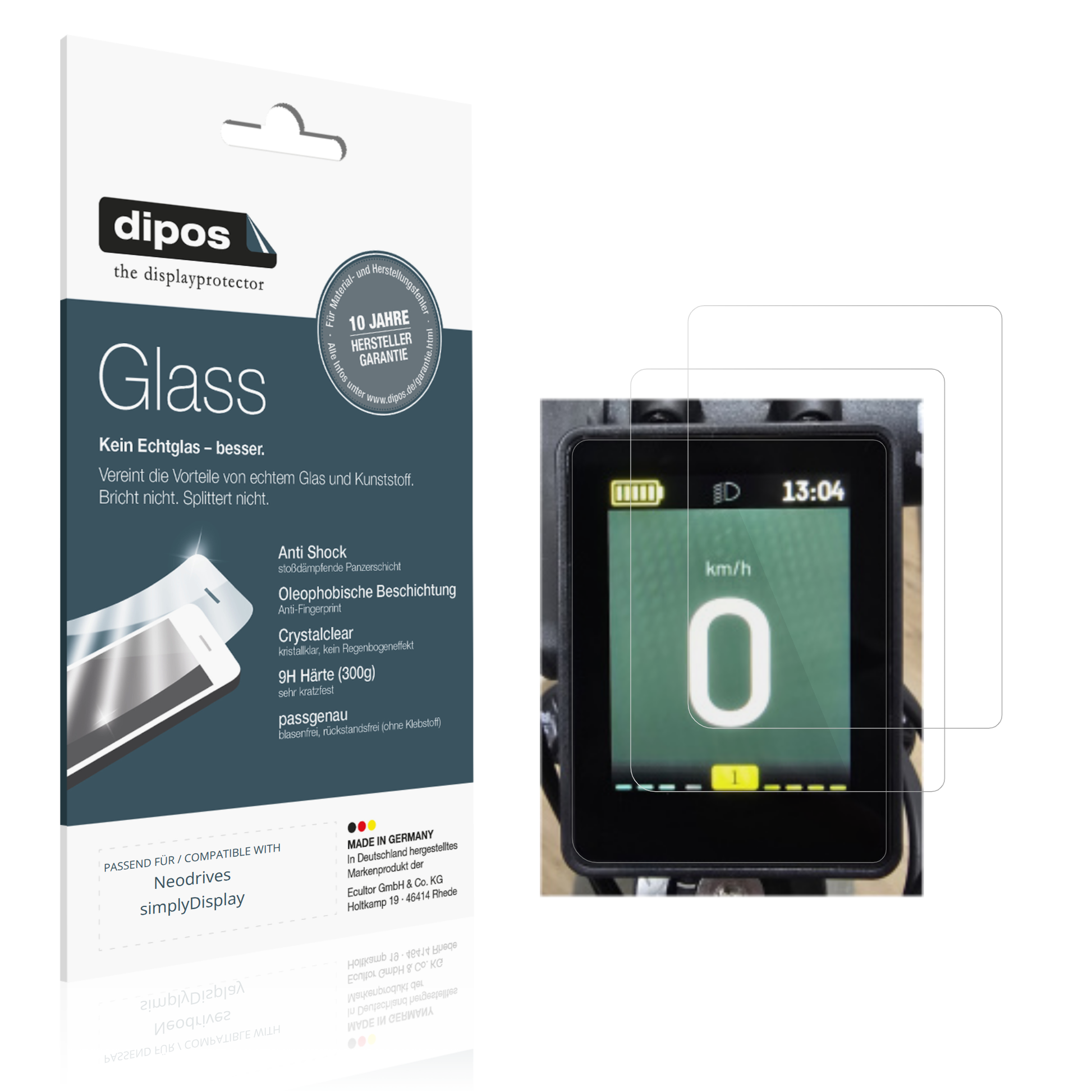 2 Stück dipos Glass passend für Neodrives simplyDisplay