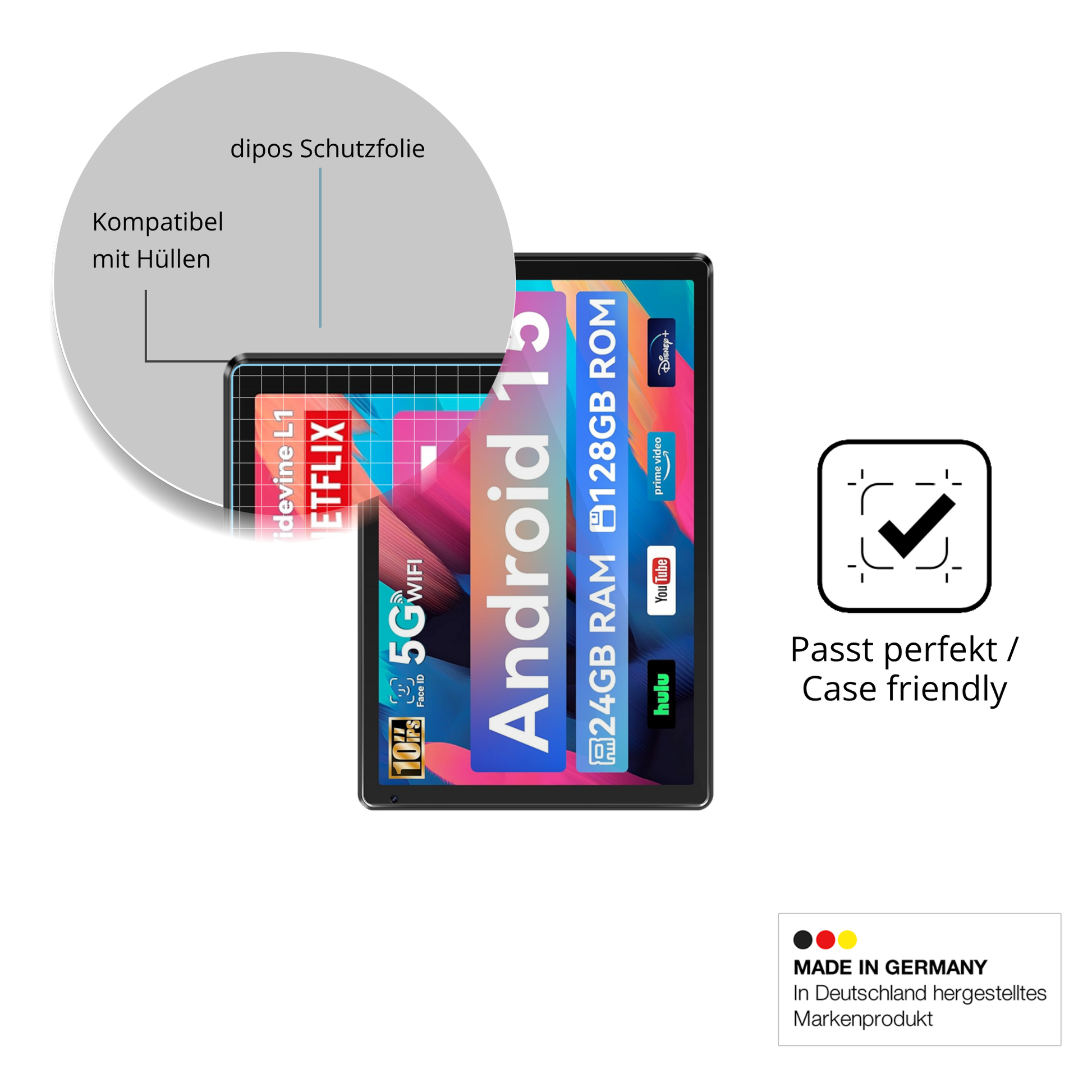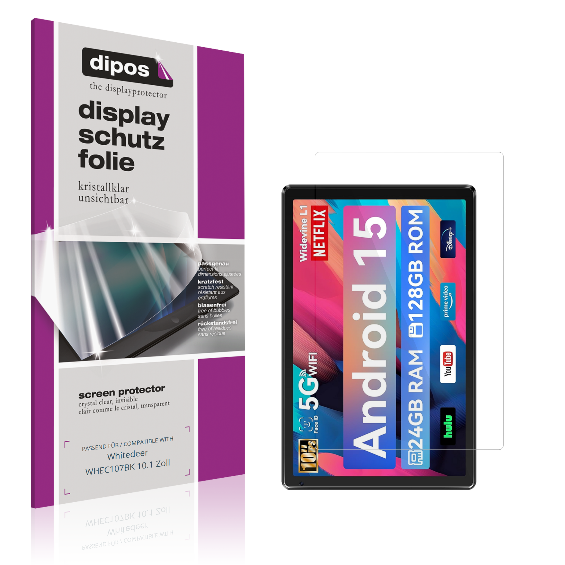 Die dipos Crystalclear Schutzfolie ist mit nur ca. 0,12 mm extrem dünn und unsichtbar, bewahrt das ursprüngliche Design und die Haptik deines Whitedeer WHEC107BK 10.1 Zoll. -