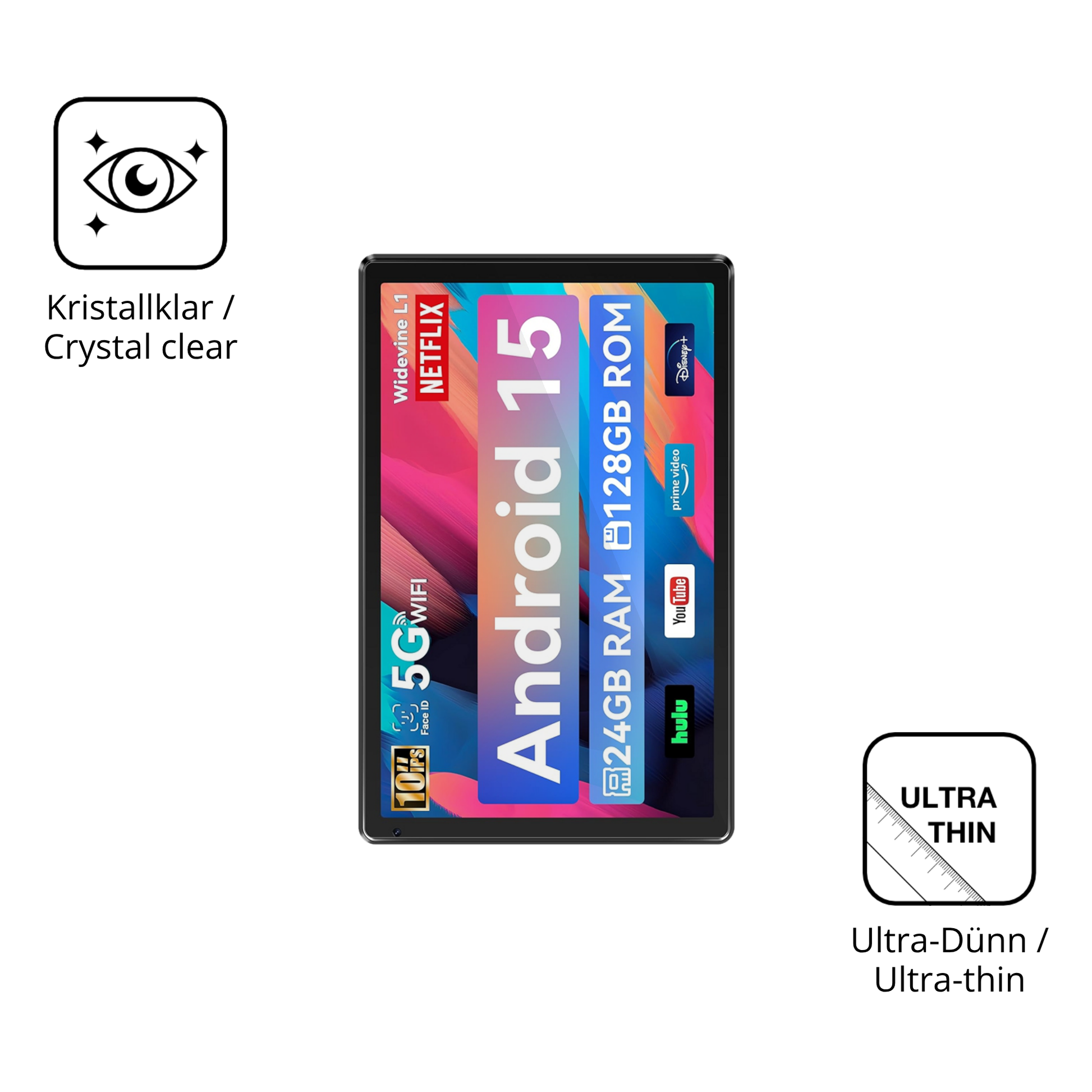 Bruchsicher: Anders als Hartglas, das bei einem Stoß leicht zerbrechen kann, ist PET-Folie bruchfest. Kein Splittern, keine gefährlichen Glassplitter – nur zuverlässiger Schutz.