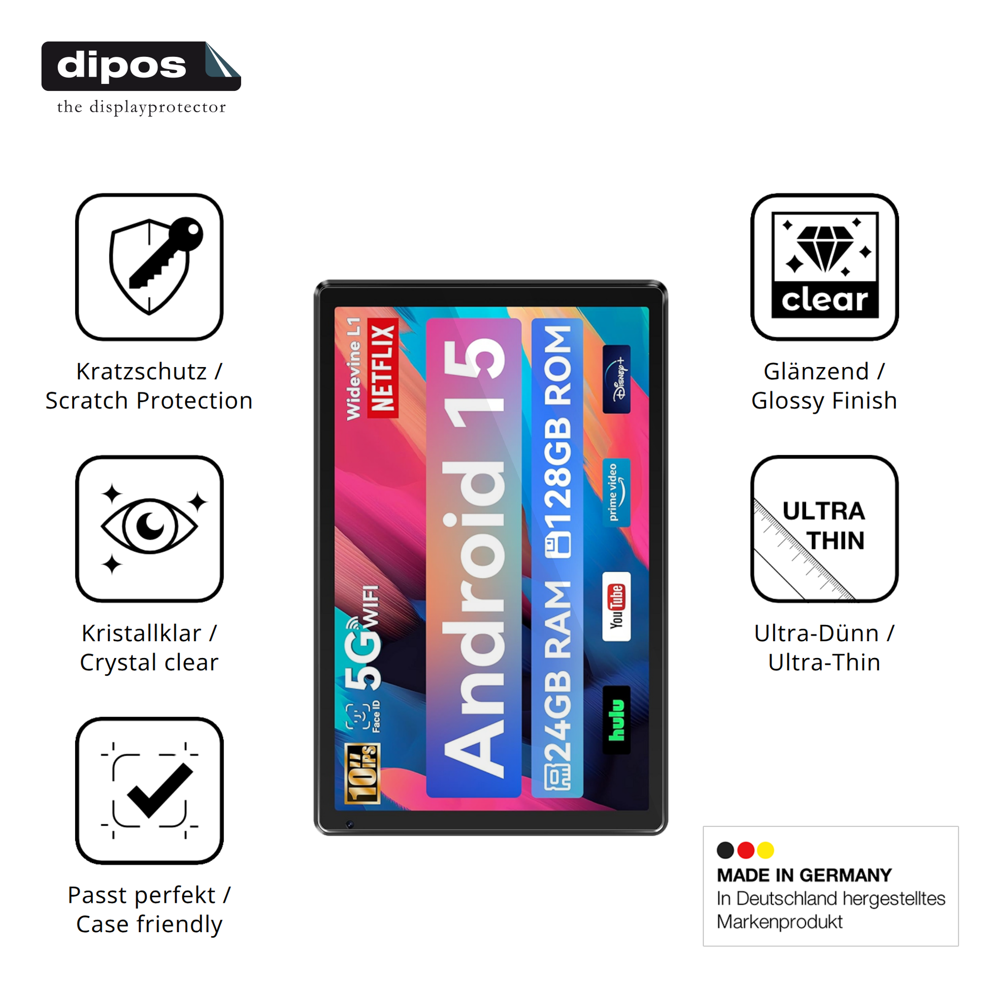 Suchst du nach einer echten Alternative zu klobigen, schweren Schutzgläsern? Stell dir vor, du könntest einen Displayschutz haben, der so dünn und klar ist, dass du ihn kaum bemerkst – als wäre er gar nicht da. Genau das bietet dir die dipos Crystalclear Schutzfolie, entwickelt mit 20 Jahren Erfahrung und Expertise eines deutschen Pioniers in der Herstellung von Displayschutzfolien.