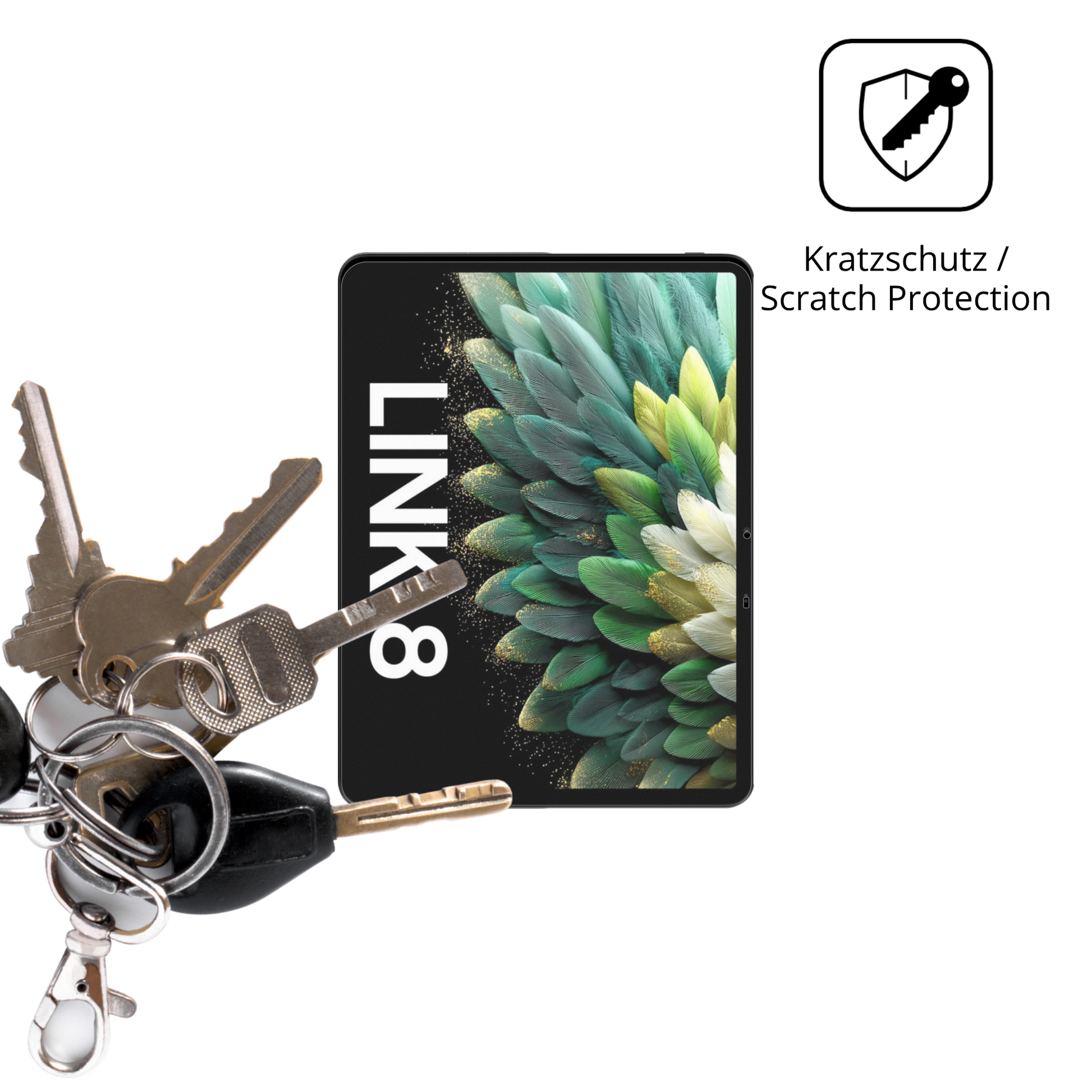 Trotz der geringen Dicke schützt die Folie wirksam vor Stößen und durch eine hohe Kratzfestigkeit effektiv vor Kratzern. Die Materialzusammensetzung ist entscheidend, nicht die Dicke. -