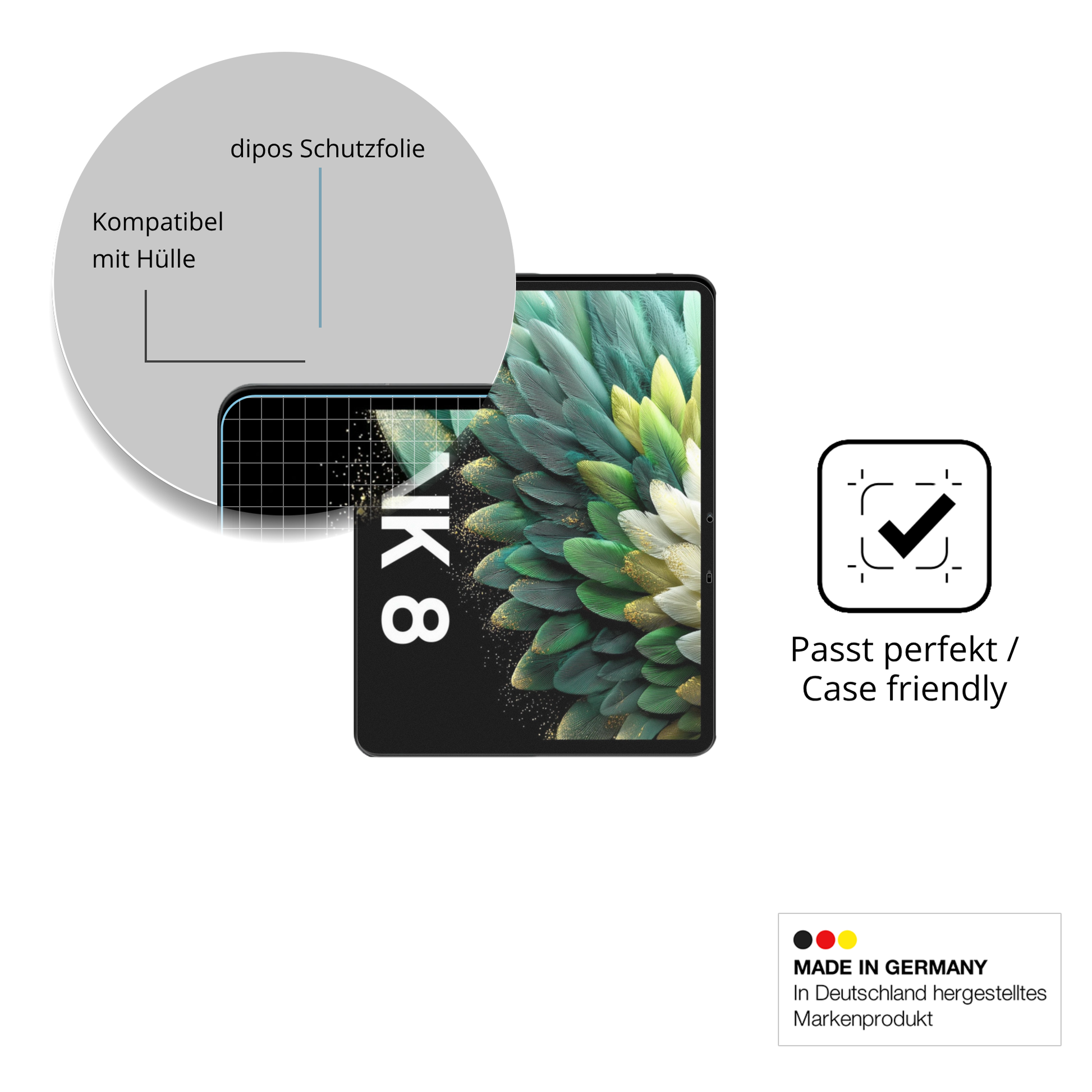Touchscreen & Fingerprint ID Sensor funktionieren weiterhin. Case-Friendly. Keine Einschränkungen bei der Nutzung von Touchscreen, Fingerprint und Face-ID. Passt mit jeder Hülle.