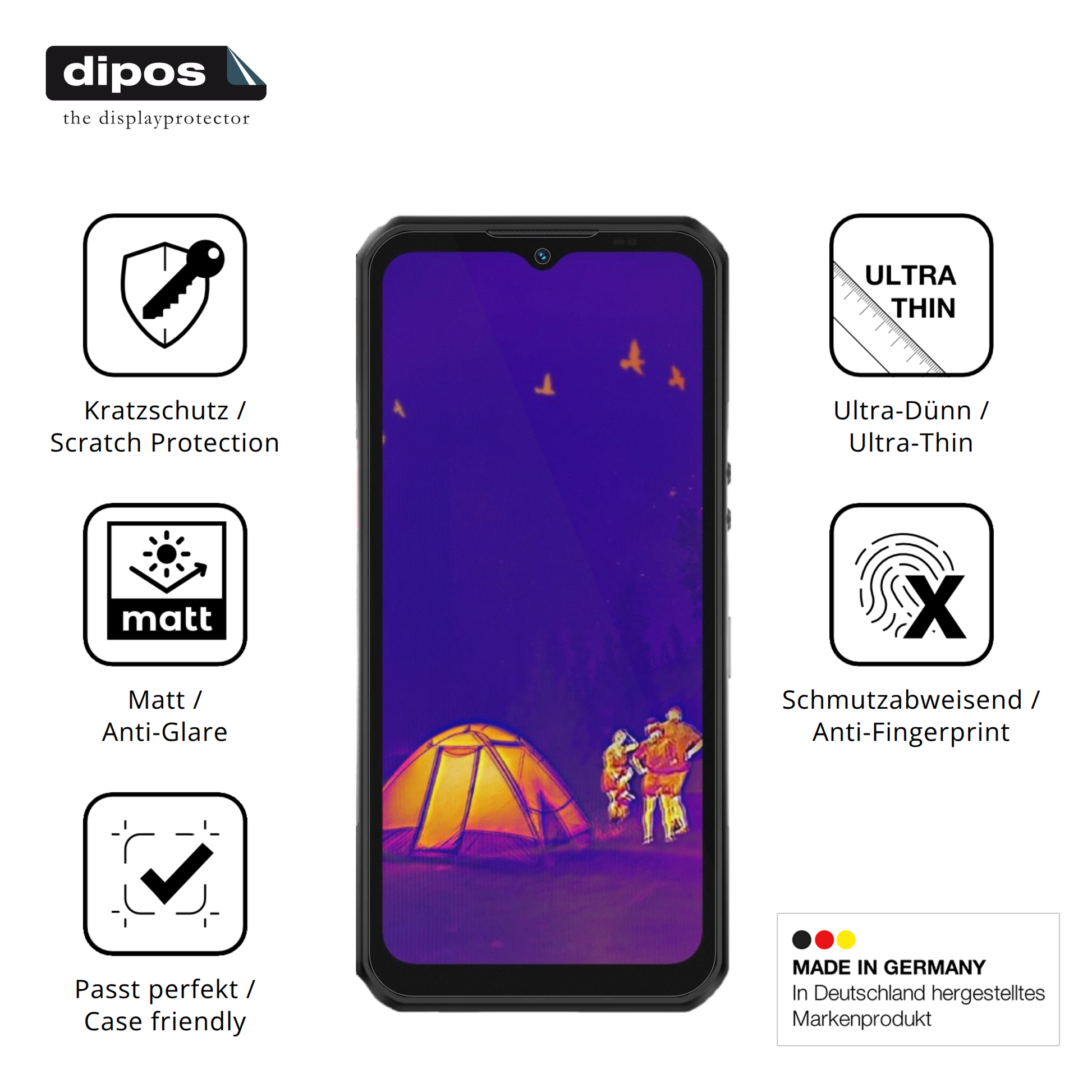 Die dipos Antireflex Schutzfolie ist mit nur ca. 0,12 mm extrem dünn und unsichtbar, bewahrt das ursprüngliche Design und die Haptik deines Oukitel WP55 Ultra Outdoor. Der Touchscreen und die Fingerabdruckerkennung bleiben wie gewohnt reaktionsschnell und präzise. -