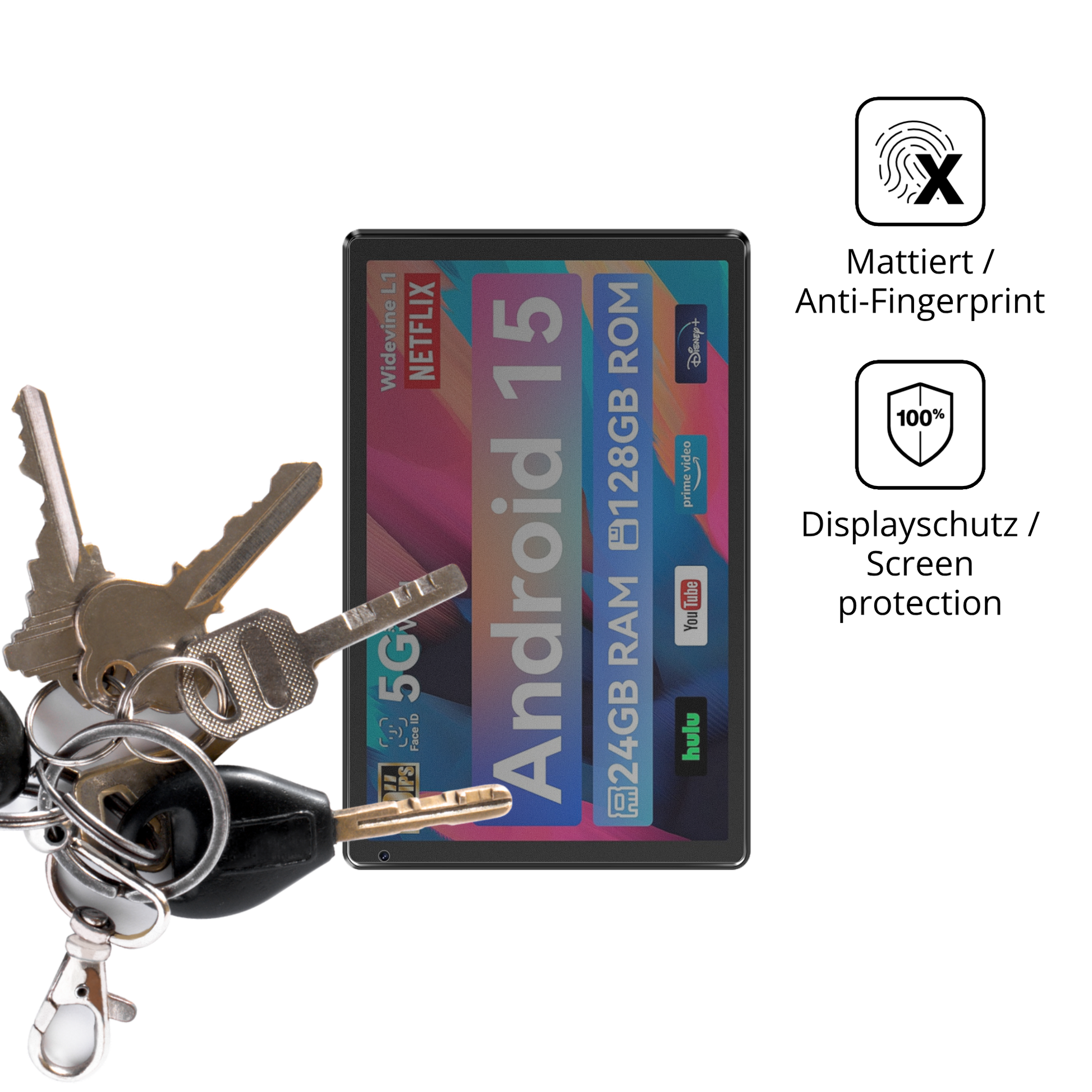 Ein In-Screen-Fingerprintsensor (sofern bei Ihrem Gerät verbaut) funktioniert mit einer Blickschutzfolie aufgrund der Materialzusammensetzung leider nur noch sehr eingeschränkt bis gar nicht. Ein Entsperren des Gerätes mittels Zahlencode oder Gesichtserkennung bleibt selbstverständlich weiterhin möglich.